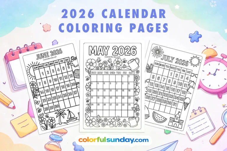 These free printable 2026 calendar coloring pages work well at home, in classrooms, or as a low-key weekend project. Print one month or print the whole year, then color as you go.