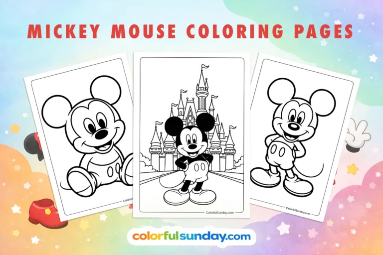 If you’re searching for free printable Mickey Mouse coloring pages, you’ll be glad to know they’re super easy to download, print, and use at home. All files come in high-resolution PDF format, which means the lines stay crisp whether you’re printing on standard 8.5×11” paper or resizing for bigger projects. We recommend using regular printer paper for quick coloring or switching to cardstock if you plan to turn the pages into crafts like bookmarks, wall art, or gift tags.