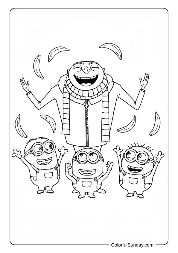 Gru With Minions Parade Coloring Page